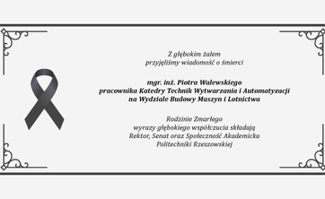 Rodzinie Zmarłego wyrazy głębokiego współczucia składają Rektor, Senat oraz Społeczność Akademicka Politechniki Rzeszowskiej