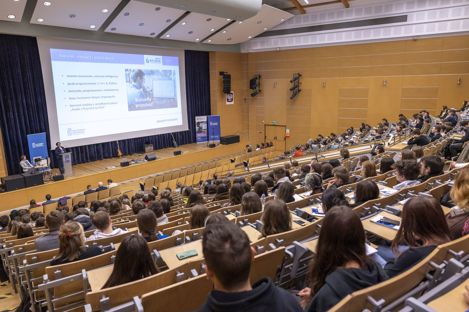 Uczestników wydarzenia przywitała prodziekan ds. kształcenia WMiFS dr Małgorzata Wołowiec-Musiał. Następnie głos zabrała prorektor ds. kształcenia dr hab. Iwona Włoch, prof. PRz, która podkreśliła, że jest to święto matematyki, a Międzynarodowy Dzień Liczby Pi obchodzony na całym świecie obfituje w różne wydarzenia i konkursy związane z tą dziedziną nauki. „Politechnika Rzeszowska jest uczelnią techniczną, na której prowadzi się kształcenie oparte na matematyce. Inżynier i matematyk to są kierunki przyszłości, a dzisiejsze wydarzenie związane z organizacją wielu paneli popularno-naukowych przyczyni się do tego, że dowiecie się Państwo więcej o tej niezwykłej liczbie Pi, wokół której rozwija się nie tylko matematyka, ale i technika. Dzisiaj sobie nie wyobrażamy, że ta liczba nie byłaby znana. Życzę Państwu zainspirowania się dzisiejszymi wykładami, podziwu i zachwytu matematyką oraz liczbą Pi” – powiedziała prorektor prof. I. Włoch, informując, że Politechnika Rzeszowska jako jedna z niewielu uczelni technicznych kształci studentów na kierunku matematyka i ma wiele osiągnięć naukowych w tej dyscyplinie. Posiada również uprawnienia do nadawania stopni naukowych doktora i doktora habilitowanego w dyscyplinie matematyka. Uczestnicy wydarzenia mogli również zapoznać się z ofertą kształcenia na Wydziale Matematyki i Fizyki Stosowanej, którą przedstawiła prodziekan ds. kształcenia dr Urszula Bednarz. W spotkaniu uczestniczyli także dziekan WMiFS dr hab. Czesław Jasiukiewicz, prof. PRz oraz prodziekan ds. rozwoju dr Sławomir Wolski.