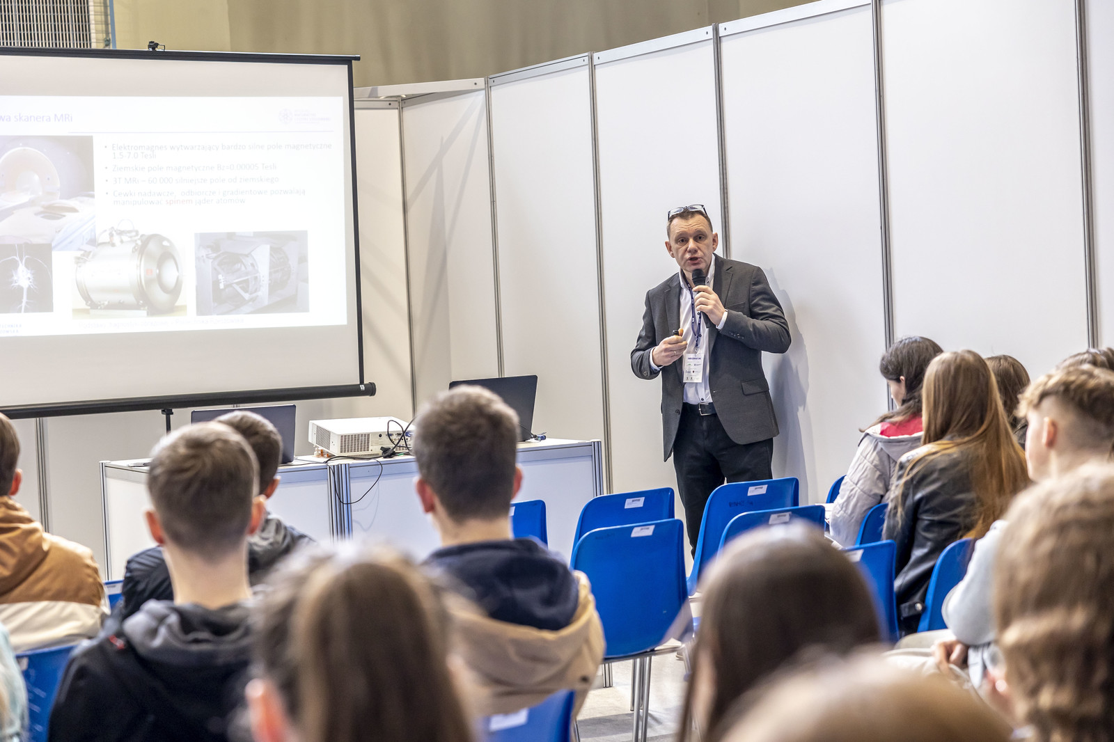 Prodziekan ds. rozwoju Wydziału Matematyki i Fizyki Stosowanej dr Sławomir Wolski przygotował ciekawe pokazy z fizyki, a dr hab. inż. Grzegorz Kopecki, prof. PRz z Wydziału Budowy Maszyn i Lotnictwa i dyrektor Centrum Komunikacji i Kultury Akademickiej mgr Damian Gębarowski przedstawili prezentację "Inżynier we współczesnym świecie".