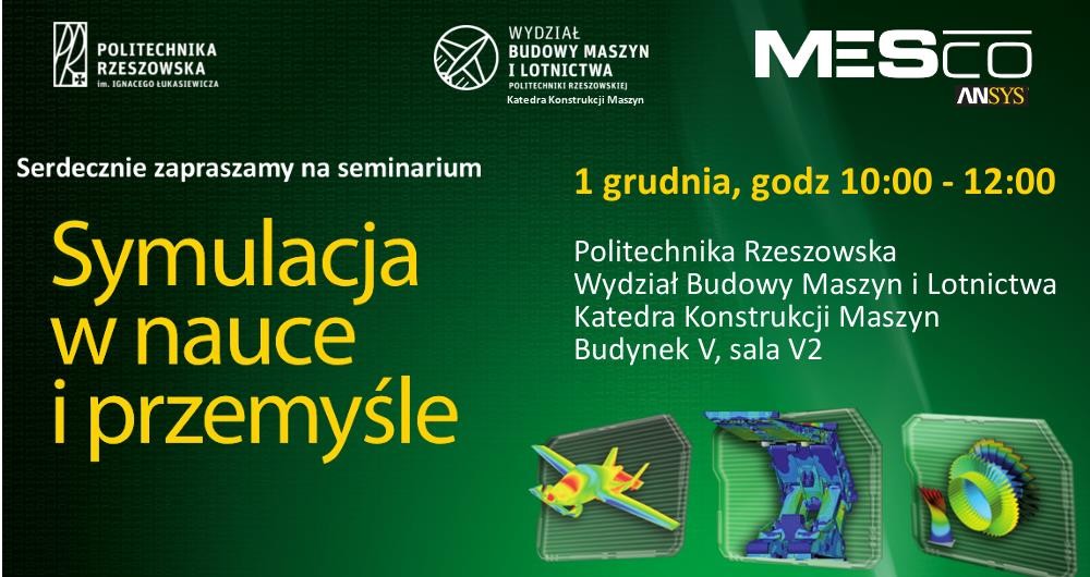 Katedra Konstrukcji Maszyn Wydziału Budowy Maszyn i Lotnictwa PRz serdecznie zaprasza wszystkich zainteresowanych pracowników i studentów PRz na seminarium pt. „Symulacja w nauce i przemyśle".